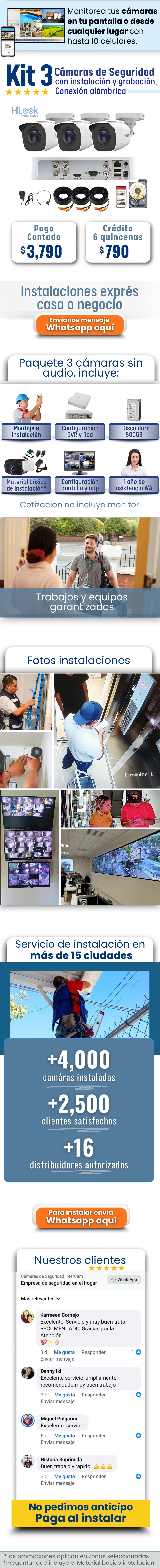 ¡Asegura tu hogar, oficina o negocio con el Paquete HiLook CCTV 3 Cámaras de Seguridad, que incluye instalación! 🔒🏠🏢